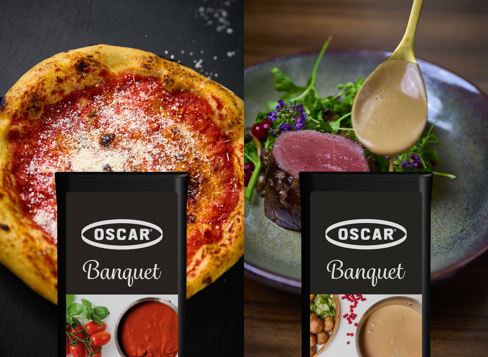 OSCAR® Banquet-saucerne er klar til brug og udviklet til at give dig en autentisk smagsoplevelse med minimal indsats i køkkenet. De er tilberedt og kogt, som du ville gøre det selv. Saucen kan bruges direkte fra kartonen efter opvarmning.